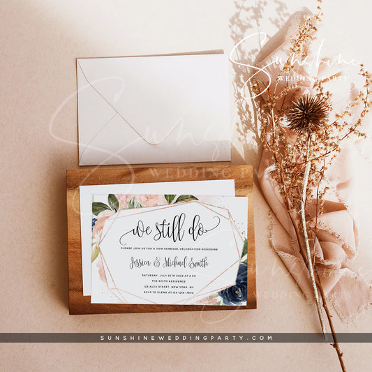 Navy & Blush Vow Renewal Invitation Template
