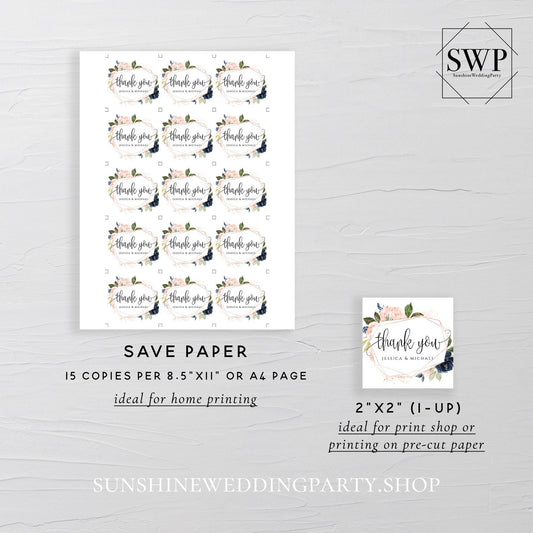 Navy Blush Floral Wedding Thank You Favor Tag Template